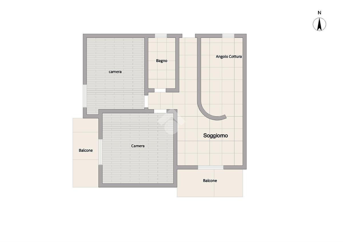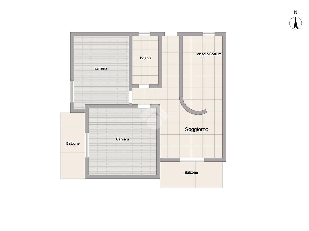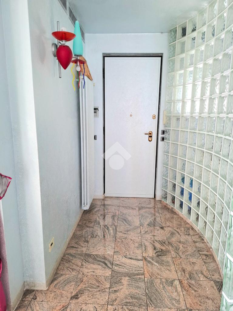L'appartamento, di 70 mq, offre una disposizione angolare che garantisce luminosità in ogni ambiente.