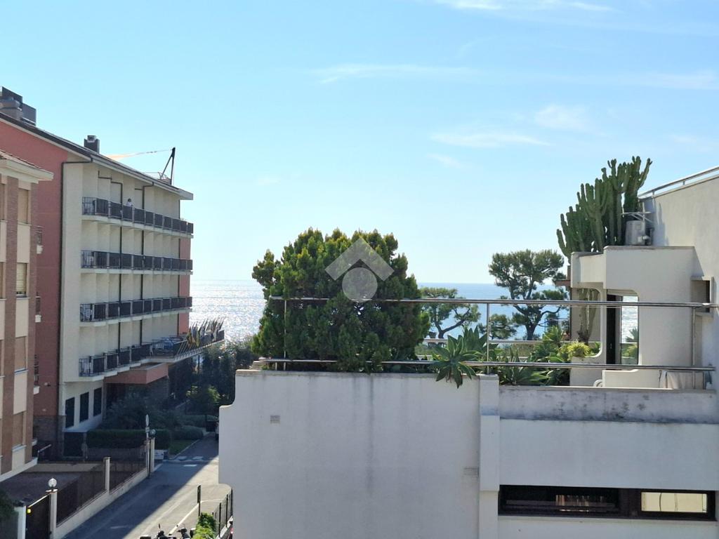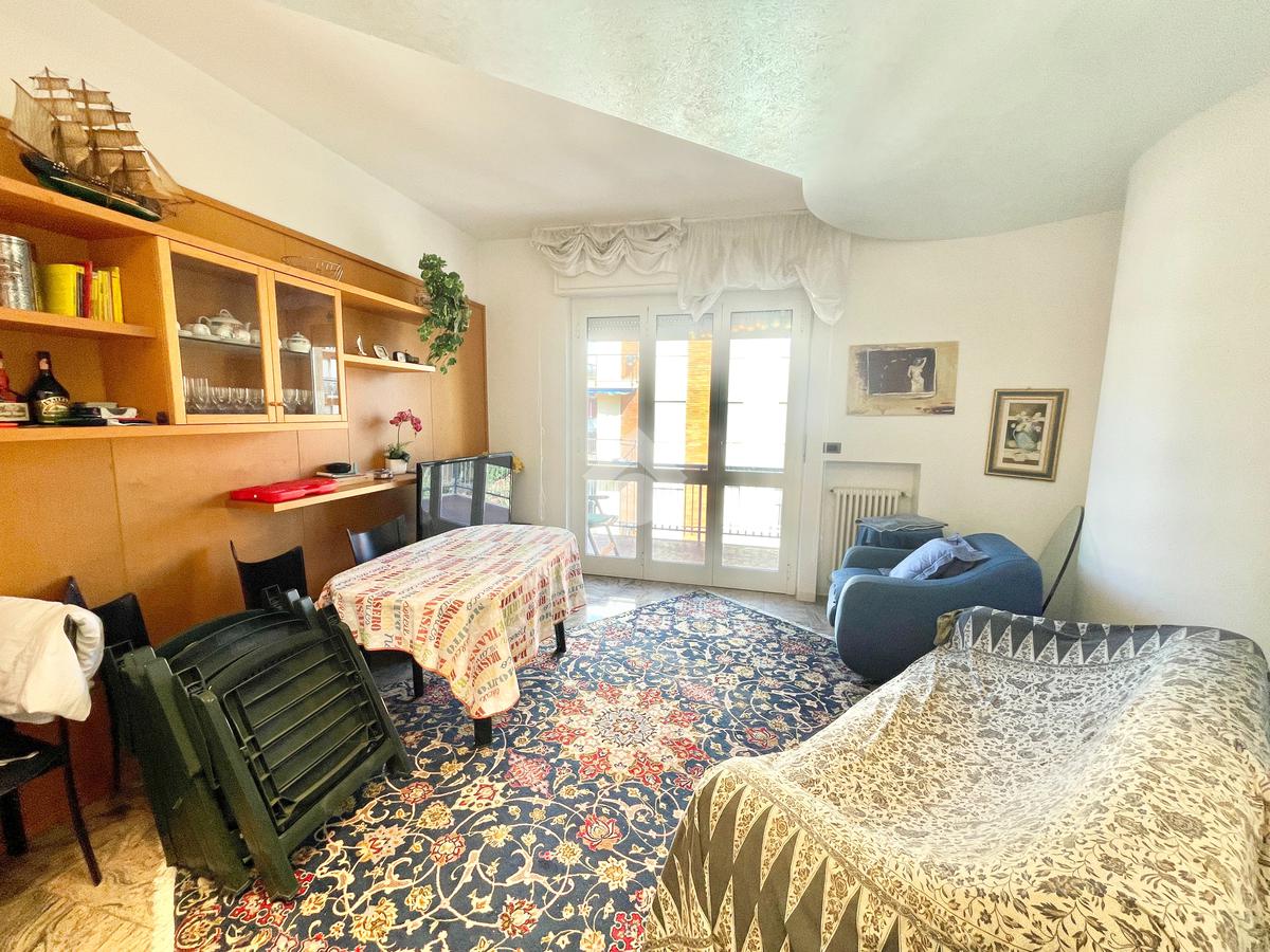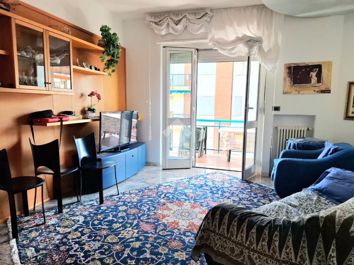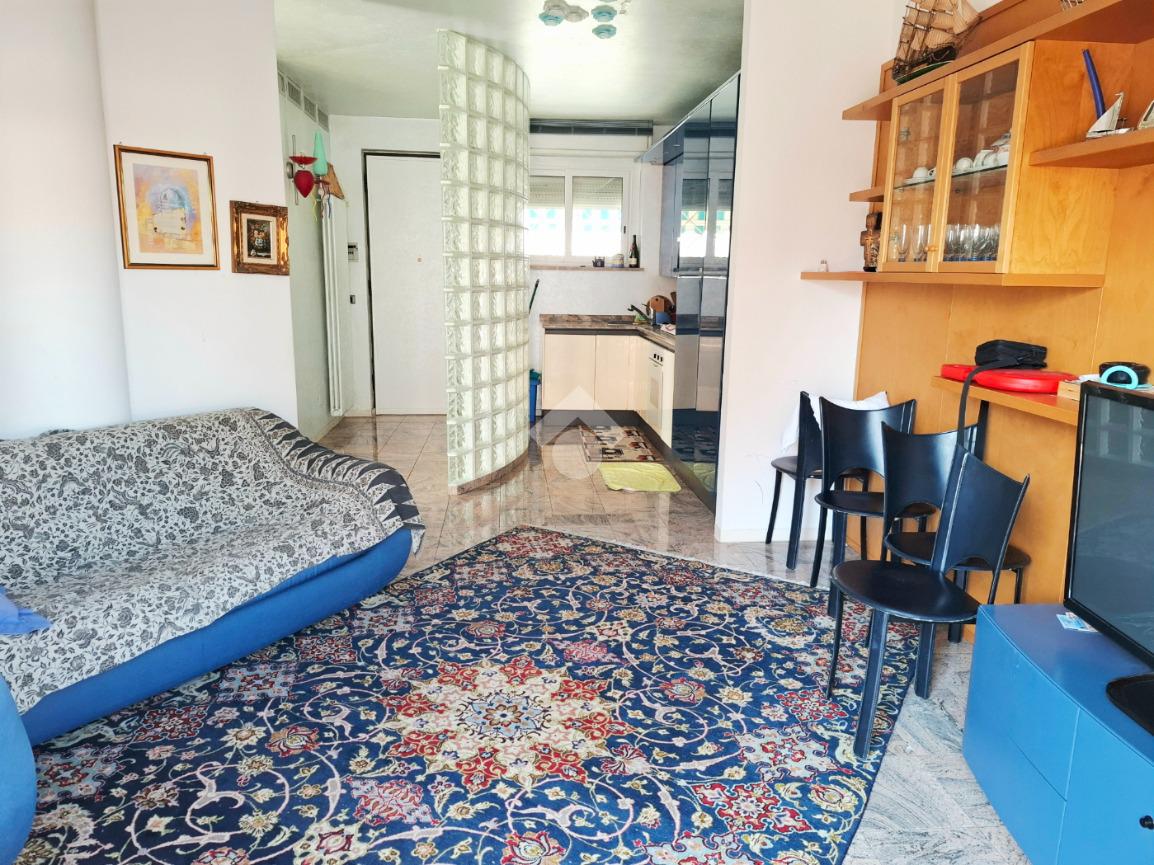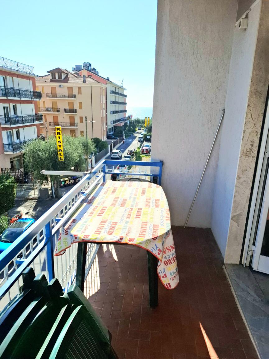 Il soggiorno con angolo cottura si apre su uno dei due balconi balconi vivibili, dai quali si può godere di una parziale vista mare.