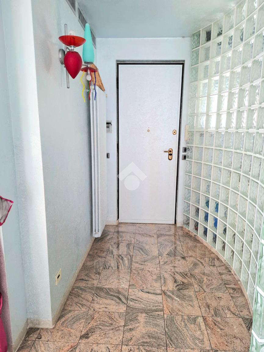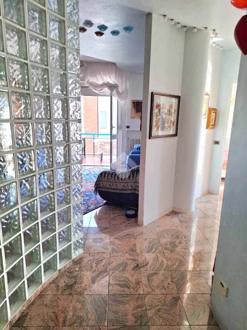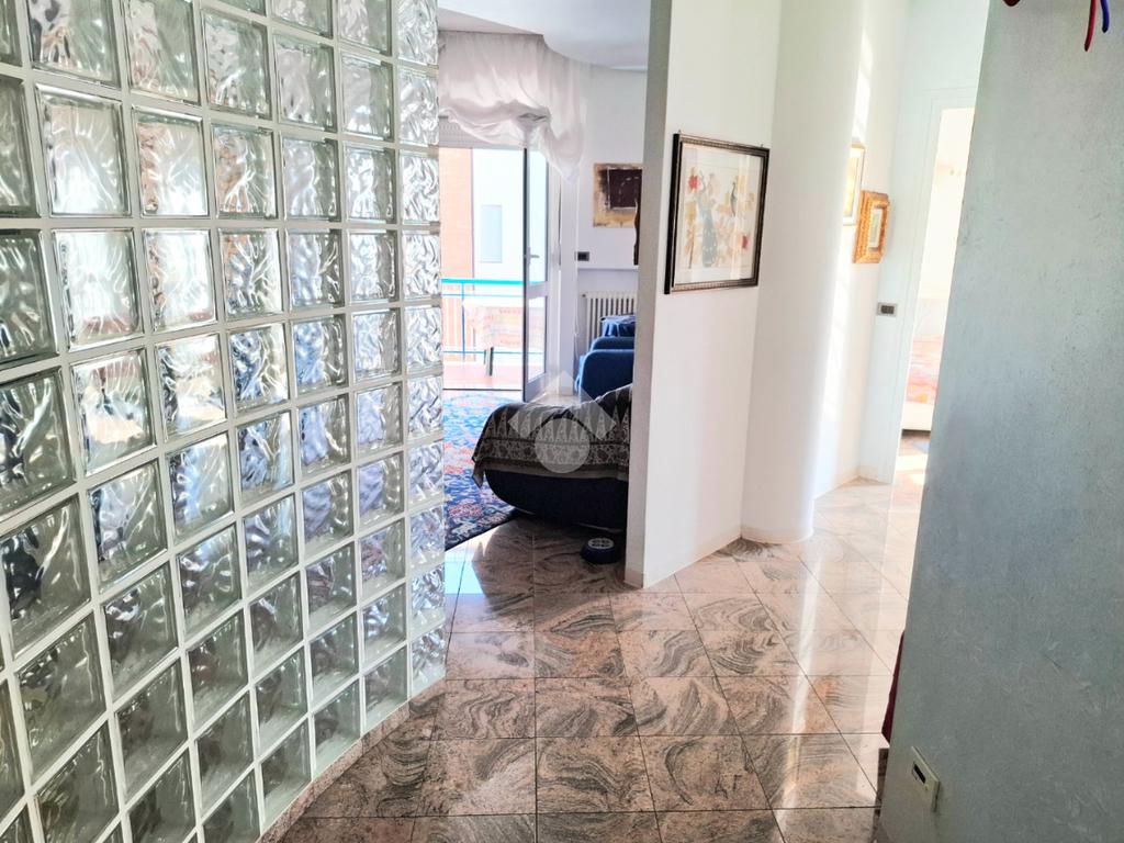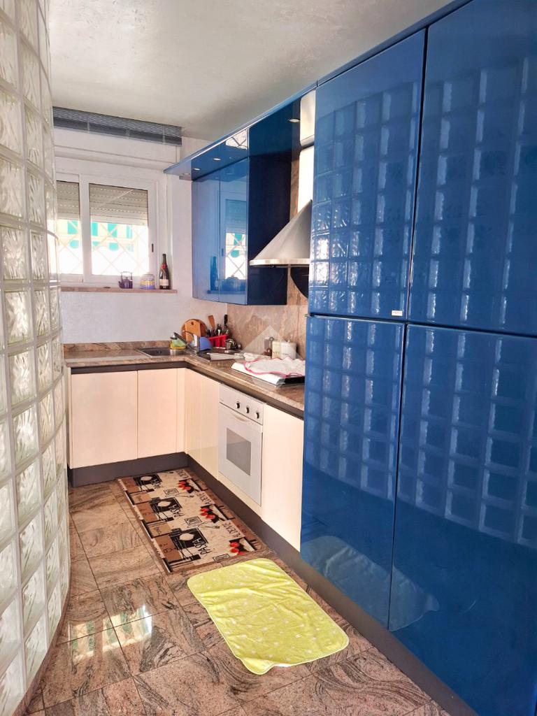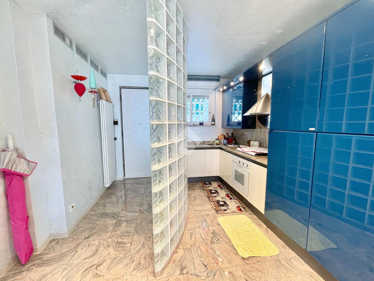 Il soggiorno con angolo cottura si apre su uno dei due balconi balconi vivibili, dai quali si può godere di una parziale vista mare.