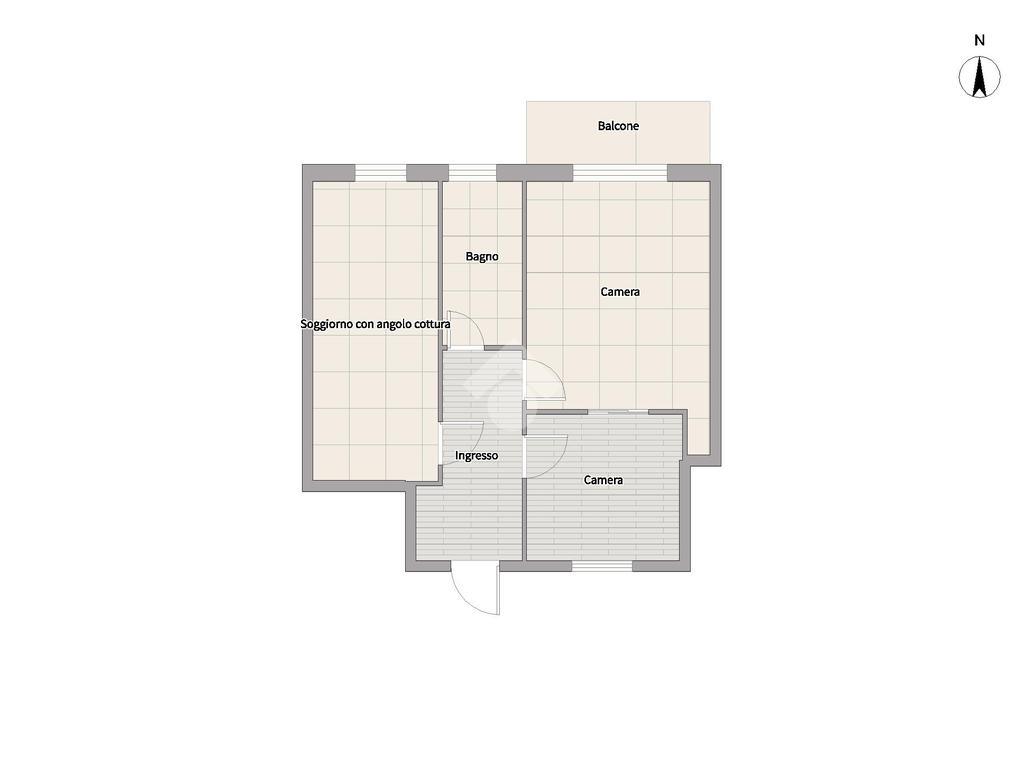 L'appartamento, offre un'accogliente disposizione degli spazi: l'ingresso conduce a una cucina funzionale, una camera matrimoniale, una cameretta e un bagno con finesta.