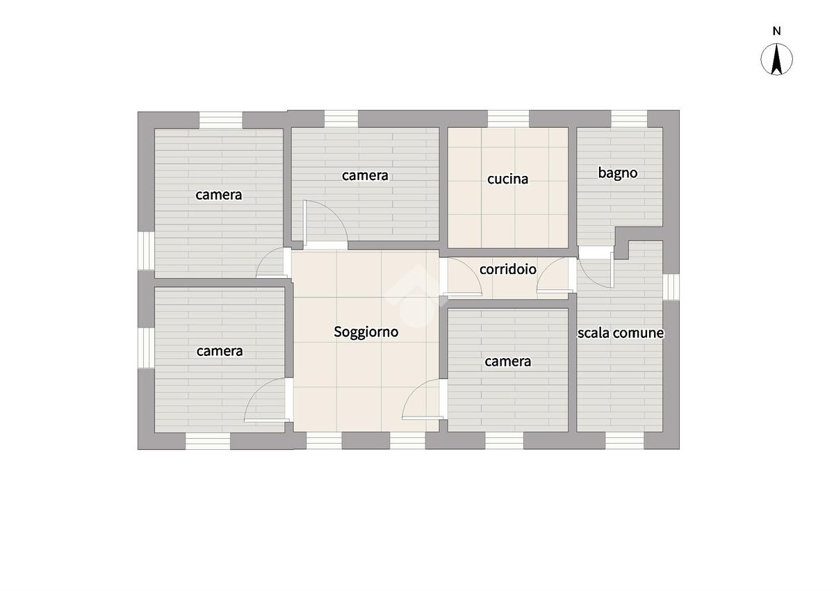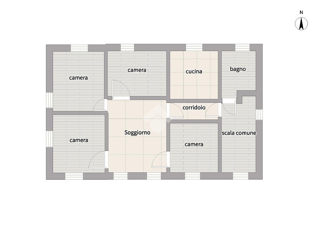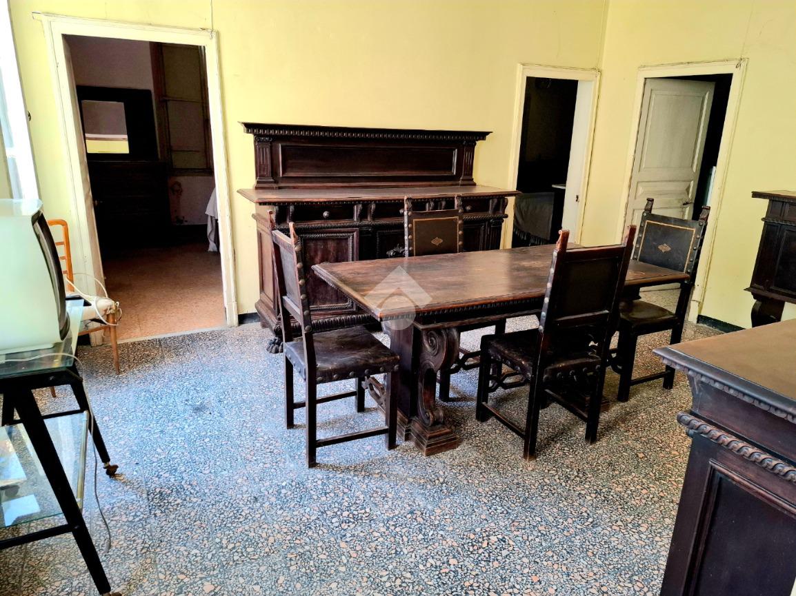 Situato al primo piano di un edificio del 1900, l'immobile si estende su 116 mq e offre una disposizione funzionale con ampia sala, cucina abitabile, quattro camere matrimoniali, bagno con la finestra e un ripostiglio.